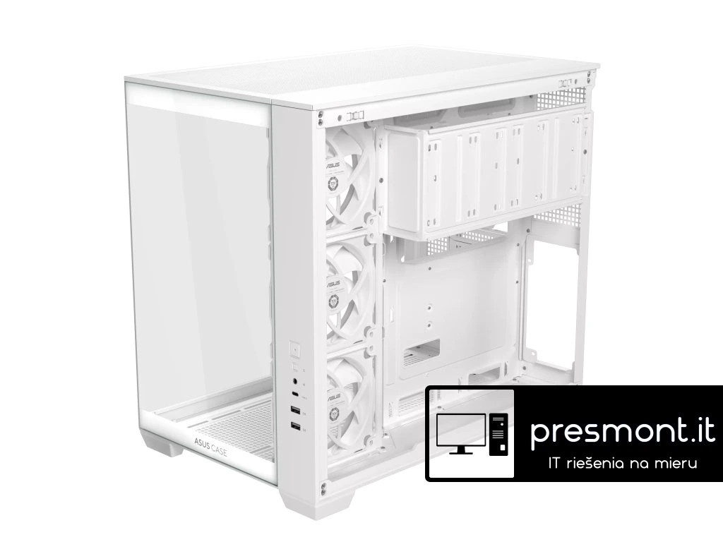 ASUS A32 PLUS - bílá Podpora základních desek: ATX, Micro-ATX, Mini-ITX Počet a typ pozic na disky: 2 × 3,5” nebo 3 × 2,5” Přední I/O porty: 1 × kombinovaný sluchátka / mikrofon 1 × USB 3.2 Gen2×1 Type-C 2 × USB 3.0 Podpora radiátorů: Nahoře: 120 / 240 / 360 mm Vzadu: 120 mm Podpora ventilátorů: Nahoře: 3 × 120 mm Vzadu: 1 × 120 mm Bočně: 3 × 120 mm Předinstalované ventilátory: Vzadu: 1 × 120 mm ARGB Bočně: 3 × 120 mm ARGB, Reverse PWM Maximální výška chladiče CPU: 165 mm Maximální délka grafické karty (GPU Length): 420 mm Maximální délka zdroje napájení (PSU Length): 220 mm Prachové filtry (Dust Filters): Odebíratelné na spodní straně a pravé straně Maximální prostor pro vedení kabeláže (Cable Management Space): 90 mm Rozměry (Dimensions): Šířka × výška × hloubka: 285 × 390 × 435 mm Odkaz na oficiální web: https://www.asus.com/motherboards-components/cases/asus/asus-a32-plus-case/Dodatočné parametre