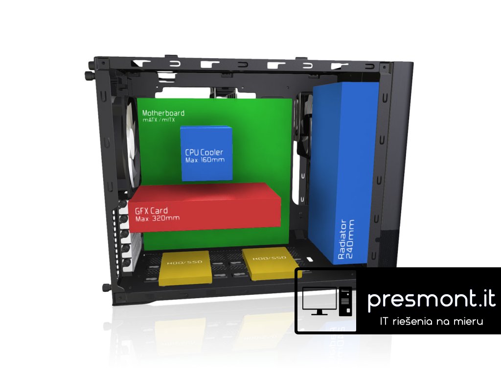 *Fractal Design Node 804 je špičková micro-ATX case s průhlednou bočnicí a velmi účinným chlazením * Dvoukomorové rozložení skříně pro efektivnější chlazení * Podpora vodního chlazení, až 4 radiators * Spodní umístění zdroje * Celkem 10 slotů pro ventilátory, 3 jsou součástí balení * Podporuje vysoké CPU chladiče až do výšky 160 mm * Obsahuje ovladač otáček ventilátoru * Jednoduchá údržba díky přítomným prachovým filtrům Rozměry: 344 x 307 x 389 mm Formát (form faktor): micro ATX Podpora základních desek: Micro ATX a Mini ITX Počet slotů 5,25'': 0 Počet slotů 3,5'': 8 x 3.5'' a 4 x 2.5” nebo 10 x 3.5” a 2 x 2.5'' Rozšiřující sloty'': 5 rozšiřujících slotů Čelní porty: *2 USB 3.0 *HD Audio Chlazení * Front: 4 - 120mm fans (součástí 1 hydraulic bearing 120mm Silent Series R2 fan, 1000 RPM speed) * Rear: 2 - 120/140mm fan (součástí 2 hydraulic bearing 140mm Silent Series R2 fans, 1000 RPM speed) * Top: 4 - 120/140mm fan (není součástí) Barva: Černá Hmotnost: 6 kgDodatočné parametre