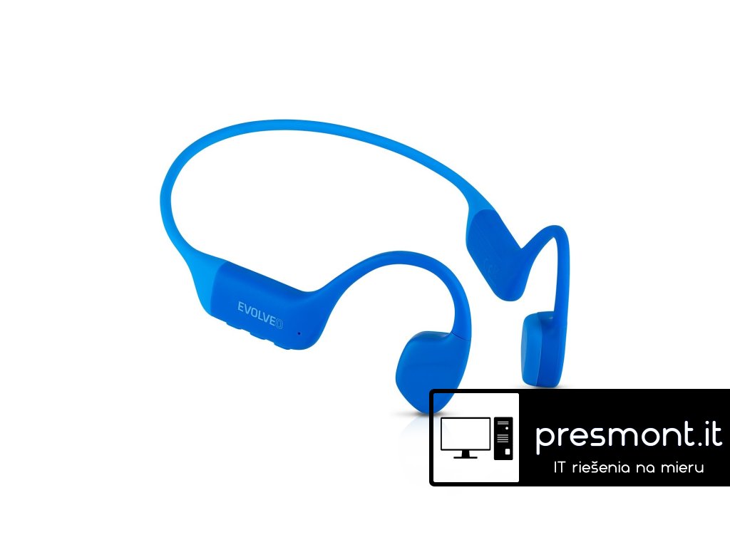 EVOLVEO BoneMax, bezdrátová sluchátka na lícní kosti, MP3 32GB, IPX8, modré
