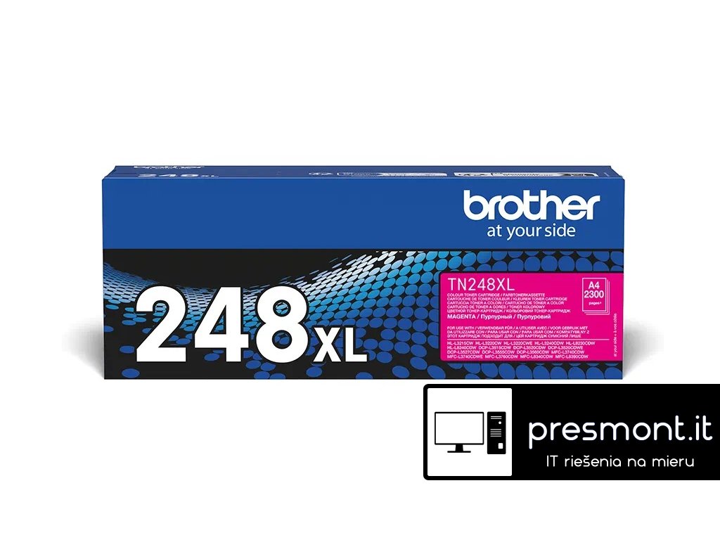 Originální tonerová kazeta Brother TN-248XLM s vysokou výtěžností – purpurová Výtěžnost: 2300 str. Kompatibilní s: HL-L3220CW HL-L8230CDW MFC-L8340CDW MFC-L8390CDW MFC-L3740CDW DCP-L3520CDW DCP-L3560CDWDodatočné parametre