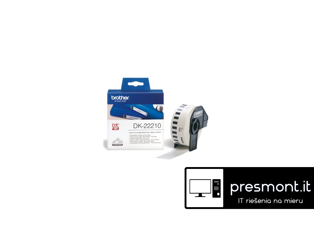 Originální páska Brother DK-22210 - černá na bílé, šířka 29 mm Odolná bílá papírová páska Brother DK-22210 využívá technologii přímého tepelného tisku, která vytváří štítky pro parcely, obálky nebo značení polic. Díky DK-22210 si můžete vychutnat možnost vytvářet libovolný typ štítku s vlastní délkou. Vlastnosti: *29 mm šířka, 30,48 m délka *Vysoce kvalitní kazeta Brother *Jasné a trvanlivé výsledkyDodatočné parametre