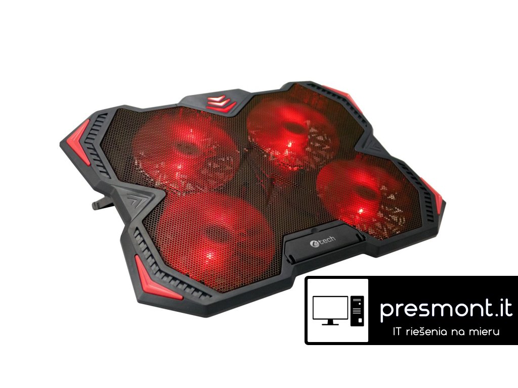 Chladiaca podložka C-TECH Zefyros (GCP-01R), casual gaming, 17,3'', červené podsvietenie, regulácia otáča