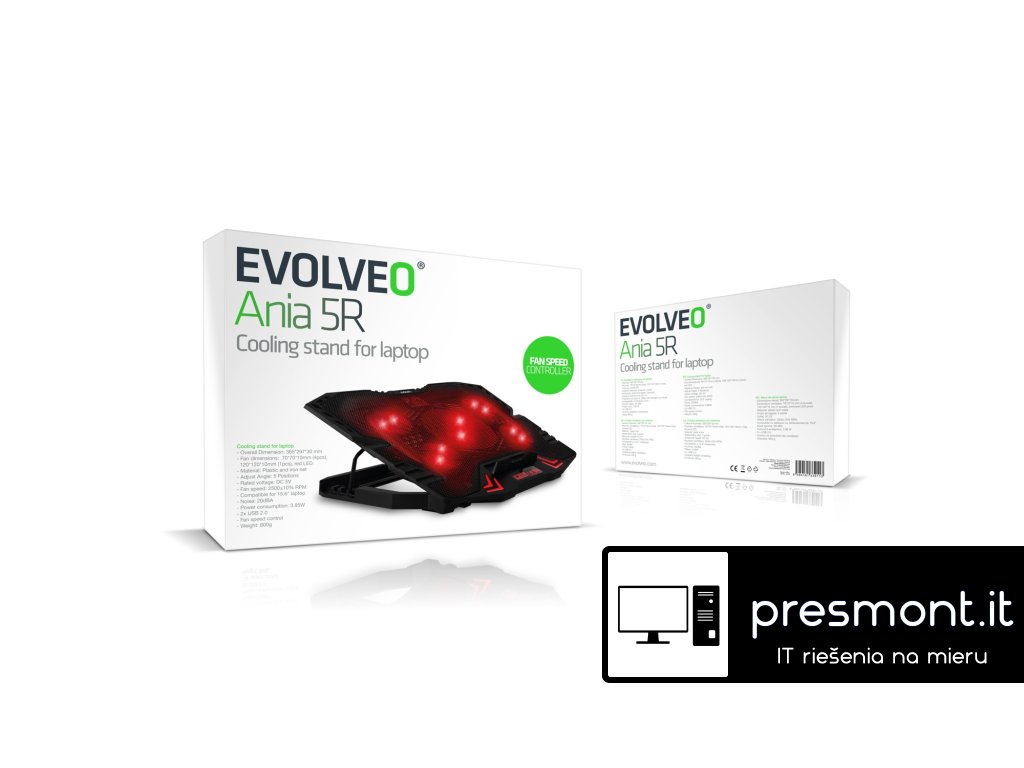 EVOLVEO Ania 5R, chladiaca podložka pre notebook, 5x ventilátor, červené podsvietenie