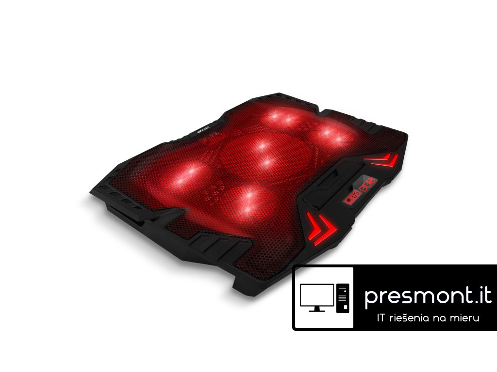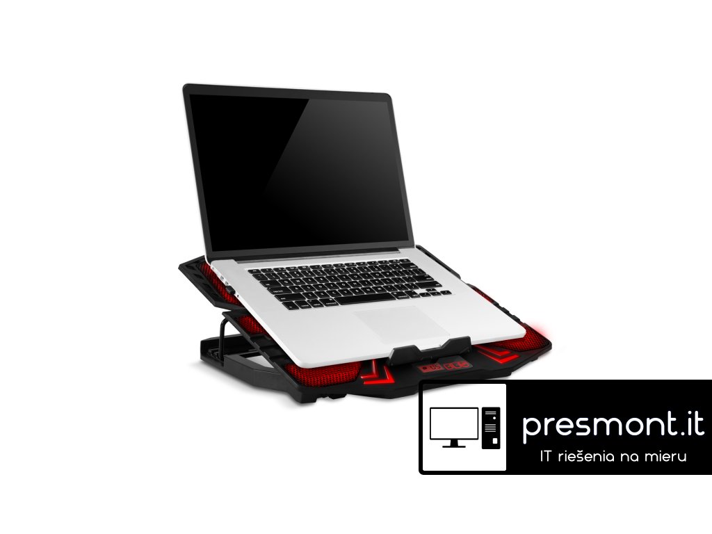 Herní polohovatelný chladící podstavec pro notebooky velikosti 11- 15.6". Regulace rychlosti otáček ventilátoru, displej s ukazatelem rychlosti ventilátorů.