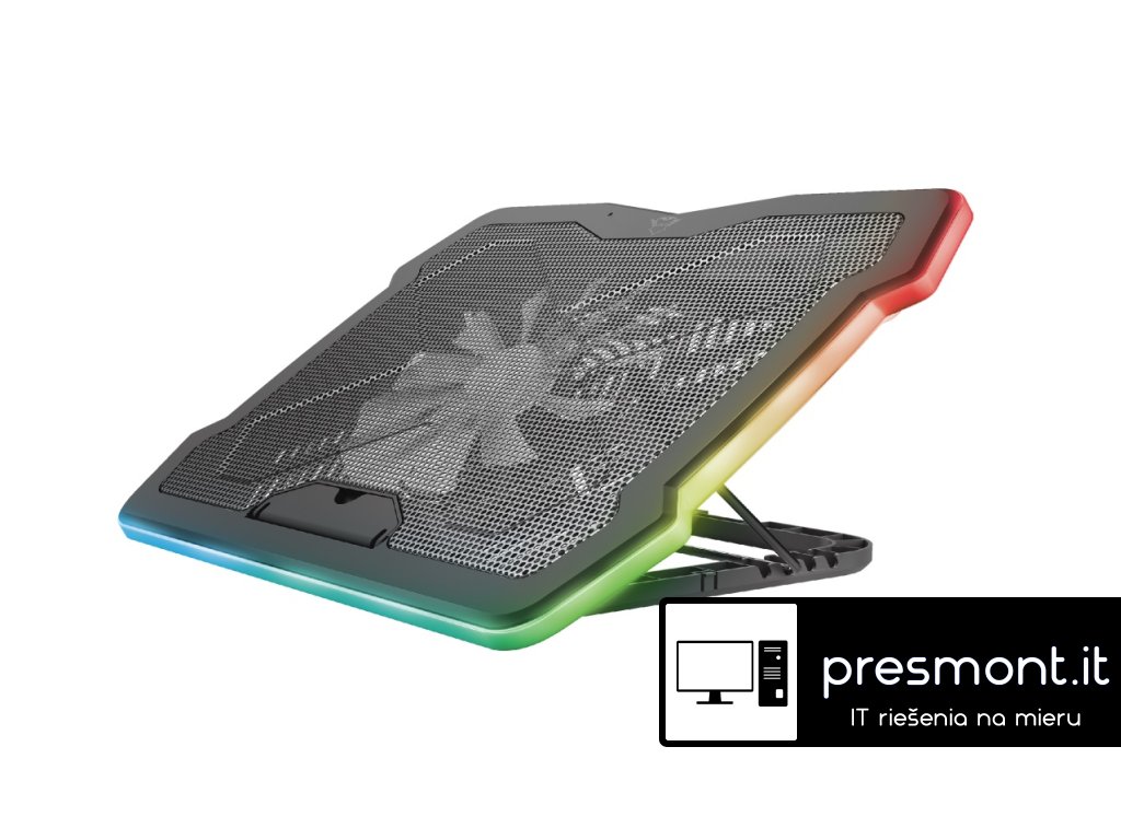 TRUST GXT 1126 Aura Multicolour-illuminated Laptop Cooling Stand. Vícebarevně osvětlený chladicí stojan, který udrží váš notebook v chladu i během těch nejnáročnějších her. Udržujte svůj notebook v chladu během horkých herních relací, zůstaňte v ergonomické poloze, abyste snížili zátěž na krk a záda. Doplňte svůj herní setup a zůstaňte v pohodě. Klíčové vlastnosti *Chladicí stojan s velkým 200mm ventilátorem pro chlazení notebooku *Upravte rychlost ventilátoru pro režim ticha nebo výkonu *Vícebarevné osvětlení doplňuje vzhled vašeho herního notebooku *Vyberte si z 5 různých barevných režimů (neon, duha, dýchání, nepřetržité, blikání, vypnuto) *Zlepšete ergonomii umístěním notebooku výše *Upravte úhel ve 4 krocích, až do výšky 210 mm *Horní deska z kovové síťoviny pro stylový vzhled a optimální proudění vzduchu *Pro jakýkoli notebook, až 17,3 palce Technické parametry *Max. velikost notebooku: 17'' *Max. hmotnost: 10 kg *Max. výška zdvihu: 20 cm *Včetně ventilátoru 200 mm *Rozměry: 26 x 421 x 312 mm *Celková hmotnost: 1000 g *LED barvy: Full RGB *Hladina hluku (rozsah): 25 dBA - 30 dBA *Rychlost otáčení: 450 RPM - 700 RPM *Průtok vzduchu: 13 CFM - 68 CFM *Počet ventilátorů: 1 *Velikost ventilátoru: 200 mm *Napájecí zdroj: USB Odkaz na web výrobce: https://www.trust.com/en/product/24192-gxt-1126-aura-multicolour-illuminated-laptop-cooling-standDodatočné parametre