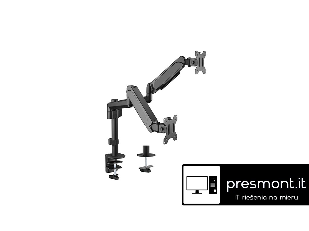 Držiak monitora Brateck LDT48-C024 dve ramená vedľa seba na tyčovom držiaku plynová vzpera