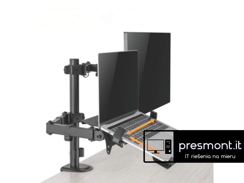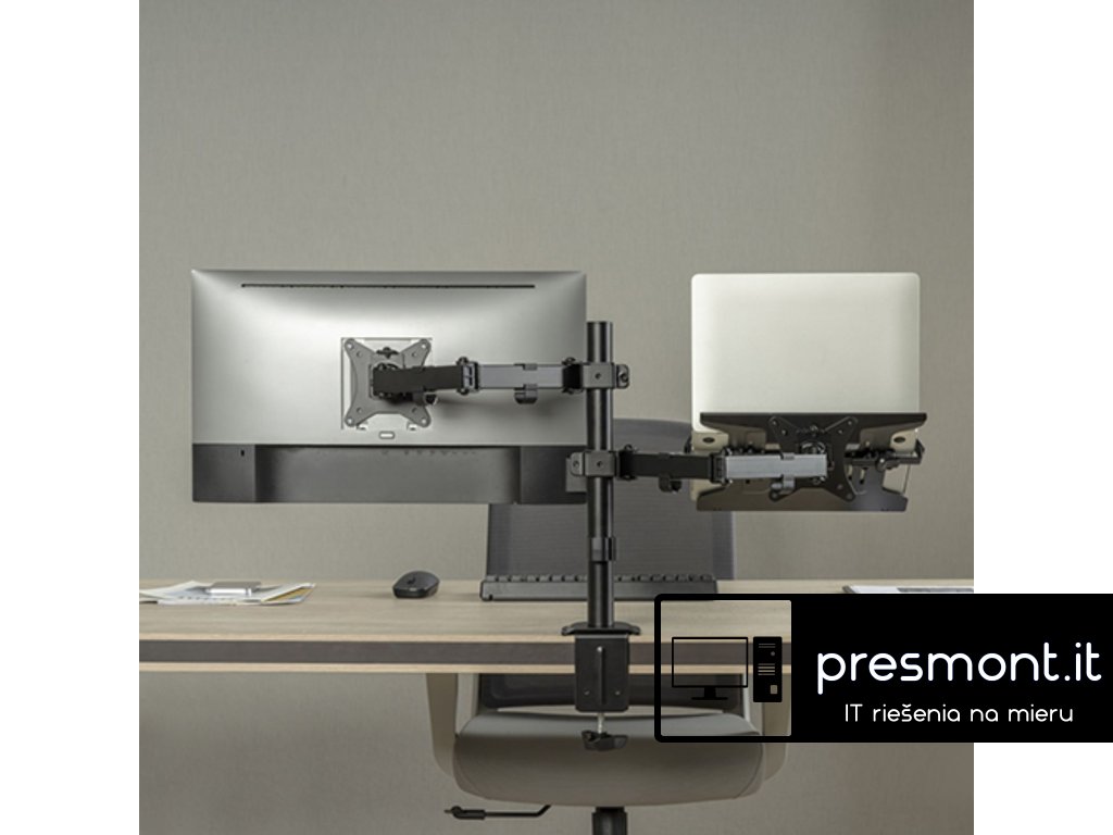 Držiak monitora Brateck LDT66-C024ML jedno kĺbové rameno + jeden držiak laptopu vedľa seba na tyčovej