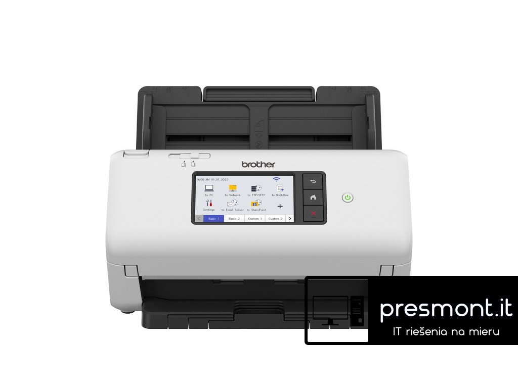 Profesionální stolní skener dokumentů s drátovým a bezdrátovým připojením a barevným uživatelským dotykovým displejem Navrženo pro firmy k zjednodušení složitých pracovních postupů nebo provozních procesů. Díky jednoduchosti skenování jedním dotykem bezpečně naskenujete své dokumenty pro snadné sdílení a spolupráci s kolegy doma nebo v kanceláři. *Rychlost skenování až 40 stran za minutu *Oboustranné skenování rychlostí až 80 obrazů za minutu a jejich pokročilé zpracování *Kapacita automatického podavače dokumentů (ADF) 80 listů předloh *Široký 10,9 cm intuitivní dotykový displej *Specializované uživatelské rozhraní *Drátové a bezdrátové síťové připojení *Rozhraní SuperSpeed USB 3.0 a skenování do USB Host *Skenování přímo z mobilního zařízení pomocí aplikace Mobile Connect *Automatické zahájení skenování, ultrazvukové čidlo současného podání více listů, separační spínač, náhled skenování, alarm čištění CIS *Součástí rozsáhlá sada programového vybavení Formát tiskárny: A4 *Volitelný A3 nosný list CS-A3301 Velikosti dokumentů větší než A4, ale nepřesahující A3, lze skenovat (jednostranně) pomocí nosného listu. Optické rozlišení: Až 600 x 600 dpi (bodů na palec) Pracovní cyklus: Max. denní 6 000 listů předloh/ Max. měsíční 120 000 listů předloh Rychlost: Podrobnosti o rychlosti skeneru: *Rychlost skenování A4 (barevně i mono): Až 40 stran za minutu *Rychlost skenování A4 oboustranně: Až 80 obrazů za minutu Automatický podavač pro skenování: (ADF) Kapacita 80 listů Rozhraní: *Místní rozhraní: SuperSpeed USB 3.0, USB 2.0 Host (zadní) *Drátové síťové rozhraní: 10Base-T/100Base-TX *Bezdrátové síťové rozhraní :2,4 GHz: IEEE 802.11b/g/n (režim infrastruktury), vertikální párování *Wi-Fi Direct Barevná hloubka: 48 bitů vstup/ 24 bitů výstup Obrazový snímač: Dvojitý snímač CIS s LED polem zdroje osvitu Rozměry: 299,5 x 215,9 x 190,5 mm Hmotnost [kg]: 2,75 kg Záruka: 24 měs.Dodatočné parametre
