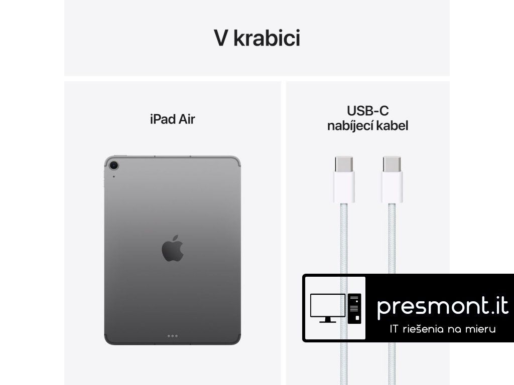 Apple iPad Air 11'' (M3) Wi-Fi + Cellular 128GB * Apple Intelligence Operační systém: iPadOS 18 Procesor: Apple M3, 8 jádrové CPU (4P+4E), 9 jádrové GPU, 16 jádrový Neural Engine Paměť: 8GB Pevný disk: 128GB Čtečka paměťových karet: ne Displej: 10,86'' Liquid Retina Multi-Touch displej s LED podsvícením a technologií IPS, 2360x1640 při 264ppi, 500 nitů, antireflexní, oleofobní úprava proti šmouhám, True Tone Audio: stereo reproduktory v orientaci na šířku, FaceTime audio, 2x mikrofon Fotoaparát zadní: * 12MP širokoúhlý, f/1,8, pětičlenný objektiv, až 5× digitální zoom, Smart HDR 4, sekvenční režim, HEIF a JPEG * 4K video při 24 fps, 25 fps, 30 fps nebo 60 fps, kontinuální autofokus při nahrávání videa, HEVC a H.264 Web kamera přední: * 12MP Center Stage na šířku, f/2,0, Smart HDR 4 * 1080p HD video při 25 fps, 30 fps nebo 60 fps, Retina Flash s True Tone, sekvenční režim, FaceTime Senzory: * Touch ID * tříosý gyroskop * akcelerometr * barometr * snímač okolního osvětlení Určování polohy: * digitální kompas * Wi-Fi * mikrolokalizace iBeacon * GPS/GNSS * mobilní data Bezdrátová komunikace: Wi-Fi 6E (802.11ax) s technologií 2×2 MIMO + Bluetooth 5.3 + 5G s technologií MIMO 4×4 Porty: * 1x USB-C (až 10 Gb/s), nabíjení, DisplayPort * 1x magnetický konektor * 1x smart konektor Baterie: vestavěná lithium-polymerová baterie s kapacitou 28,93Wh Výdrž baterie: až 10 hodin/až 9 hodin v mobilní datové síti Barva: vesmírně šedá Rozměry: 247,6x178,5x6,1mm Hmotnost: 460g V krabici: * iPad Air * USB-C nabíjecí kabel (1m)Dodatočné parametre
