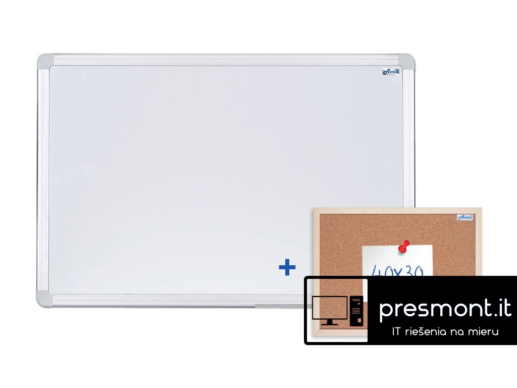 Magnetická tabuľa AVELI 90x60 cm, hliníkový rám + korková nástenka 40x30 cm