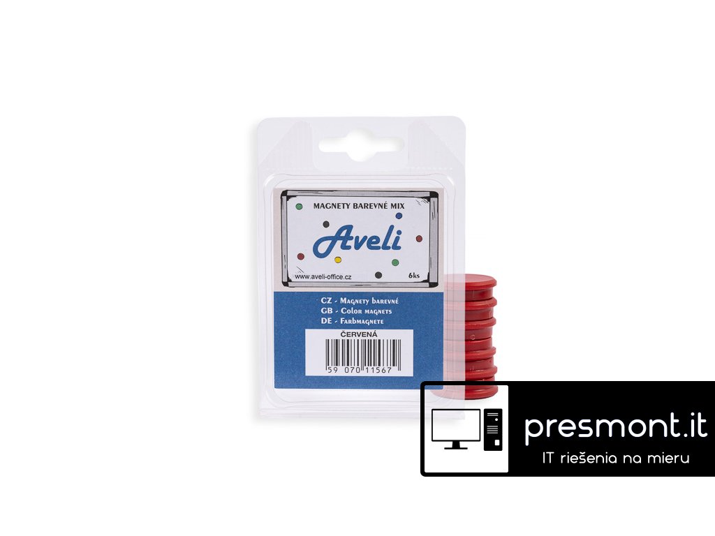 Magnety pro tabule Aveli v barevných rozlišeních. Balení 6 kusů magnetů v červené barvě. - Průměr 24 mm - Barevný plastový povrch - Kulatý tvar - Vhodné k uchycení dokumentů, výkresů i fotek na magnetických plocháchDodatočné parametre