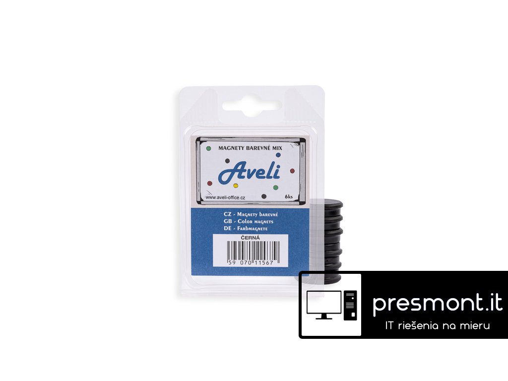 Magnety pro tabule Aveli v barevných rozlišeních. Balení 6 kusů magnetů v černé barvě - Průměr 24 mm - Barevný plastový povrch - Kulatý tvar - Vhodné k uchycení dokumentů, výkresů i fotek na magnetických plocháchDodatočné parametre