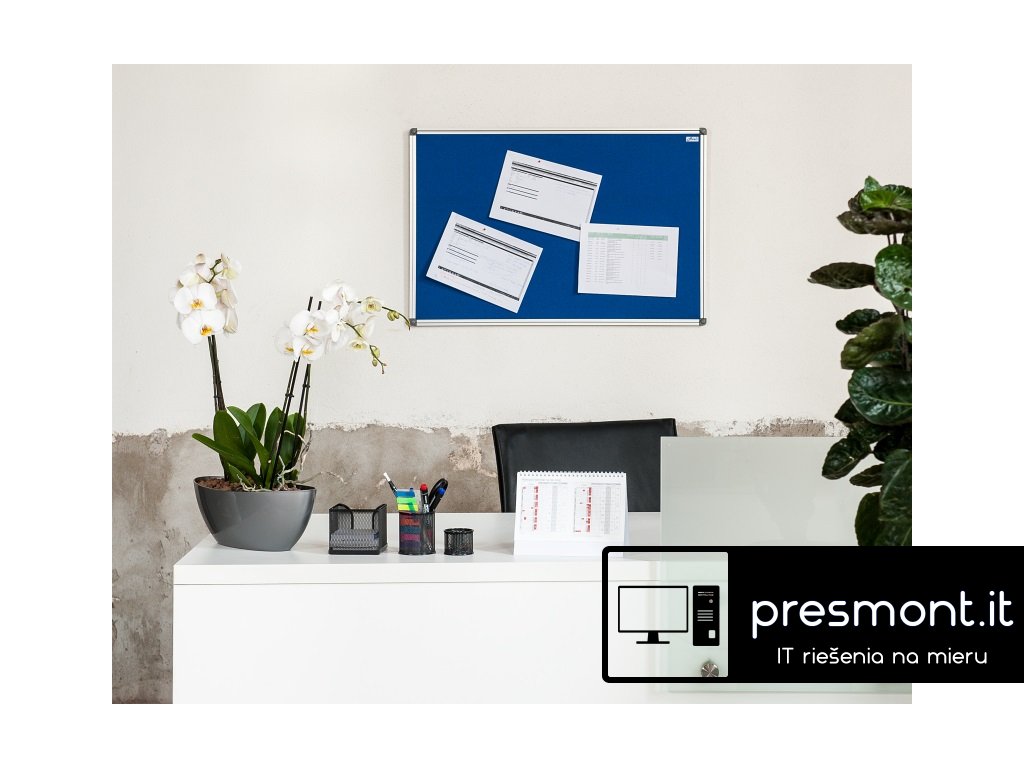 Textilní nástěnka v šedé barvě s hliníkovým rámem vhodná do prezentačních prostorů, kanceláří, firem i na úřady. Pod textilním povrchem je dřevovláknitá deska, která umožňuje dlouhodobé používání. - Rozměr: 90 x 120 cm - Povrch: textilní - Barva: šedá - Síla desky: 0,9 mm - Vyztužená zadní strana - Rám: hliníkový - Šířka rámu: 1,9 cm - Možnost připevnění háčku na flipchart - Montáž: vertikálně i horizontálně - Veškerý instalační materiál je součástí produktu Moderní textilní nástěnka AVELI má vysoce odolný povrch proti poškození při práci s napínáčky a špendlíky. Má lehkou konstrukci a elegantní rám z kvalitního eloxovaného hliníku. Nástěnka má moderní plastové uzávěry, které zakryjí upevnění na zeď.Dodatočné parametre