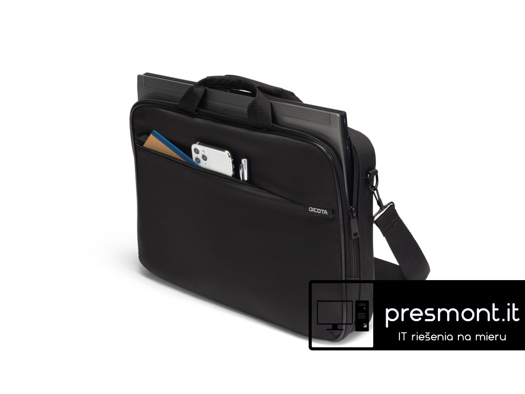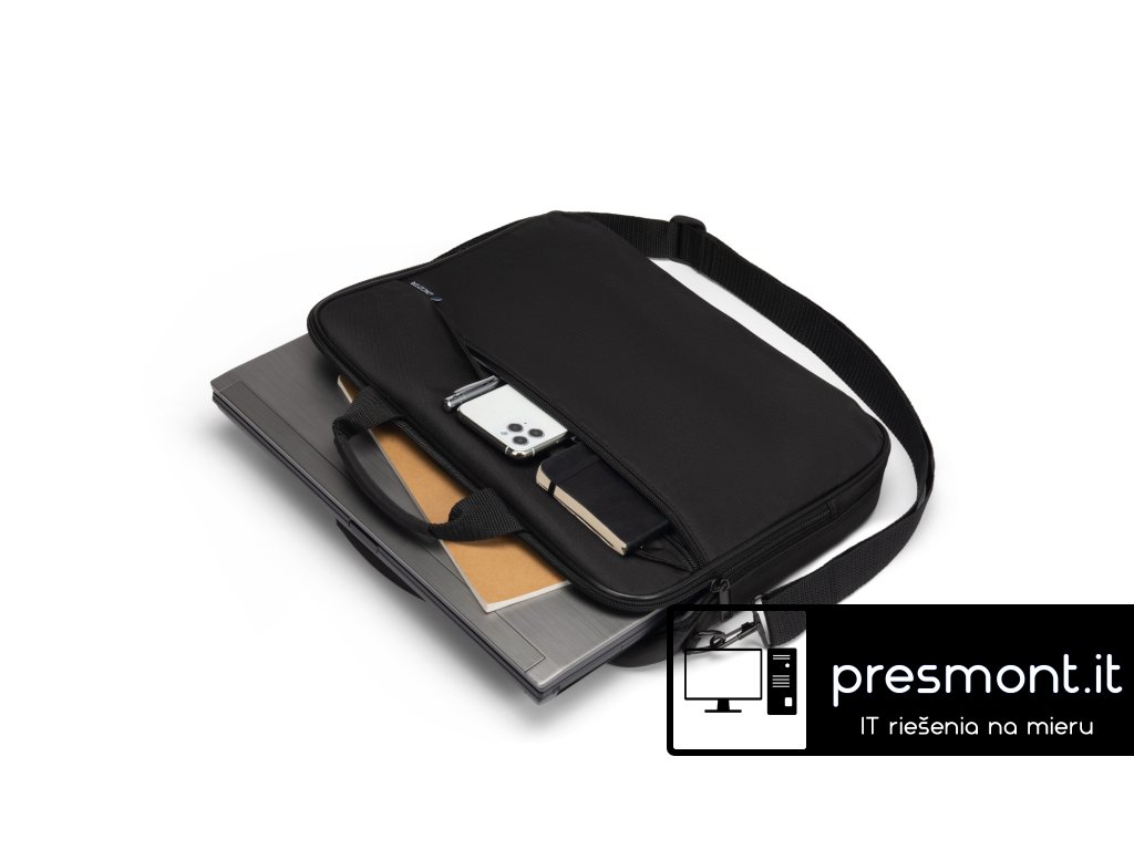 DICOTA Top Traveller ONE 14-16'' Praktická taška na notebook s ochranou S tímto modelem ONE toploader dorazí váš notebook bezpečně na místo určení. Ať už jste na cestách pracovně nebo soukromě, vaše elektronické zařízení bude v polstrované kapse dobře chráněno. *Uzamykatelná přihrádka na notebook *Kapsa se zapínacím páskem pro upevnění notebooku *Velkorysý prostor pro dokumenty a osobní věci *Přední kapsa s pracovní plochou pro mobilní příslušenství *Pohodlná rukojeť pro přenášení a odnímatelný ramenní popruh Barva: černá Materiál: 300D recyklovaný polyester PET Max. rozměry zařízení: 385 x 265 x 30 mm Rozměry produktu: 410 x 290 x 55 mm Hmotnost: 0,51 kgDodatočné parametre