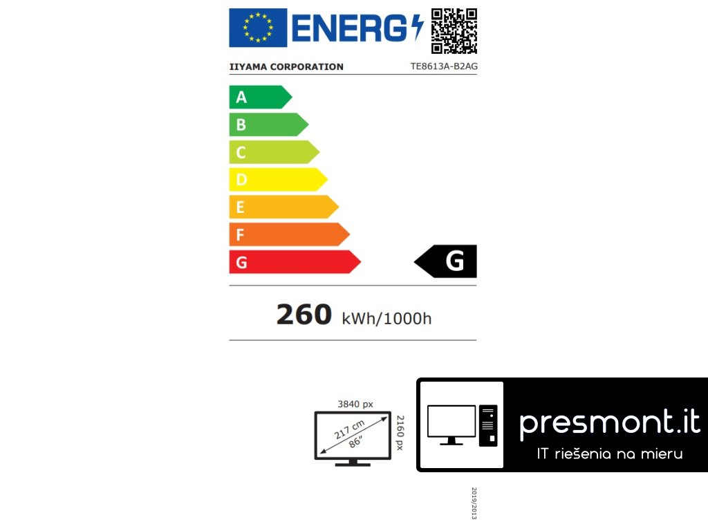 86'' iiyama TE8613A-B2AG: IPS, 4K, 40P, USB-C, EDLÁ