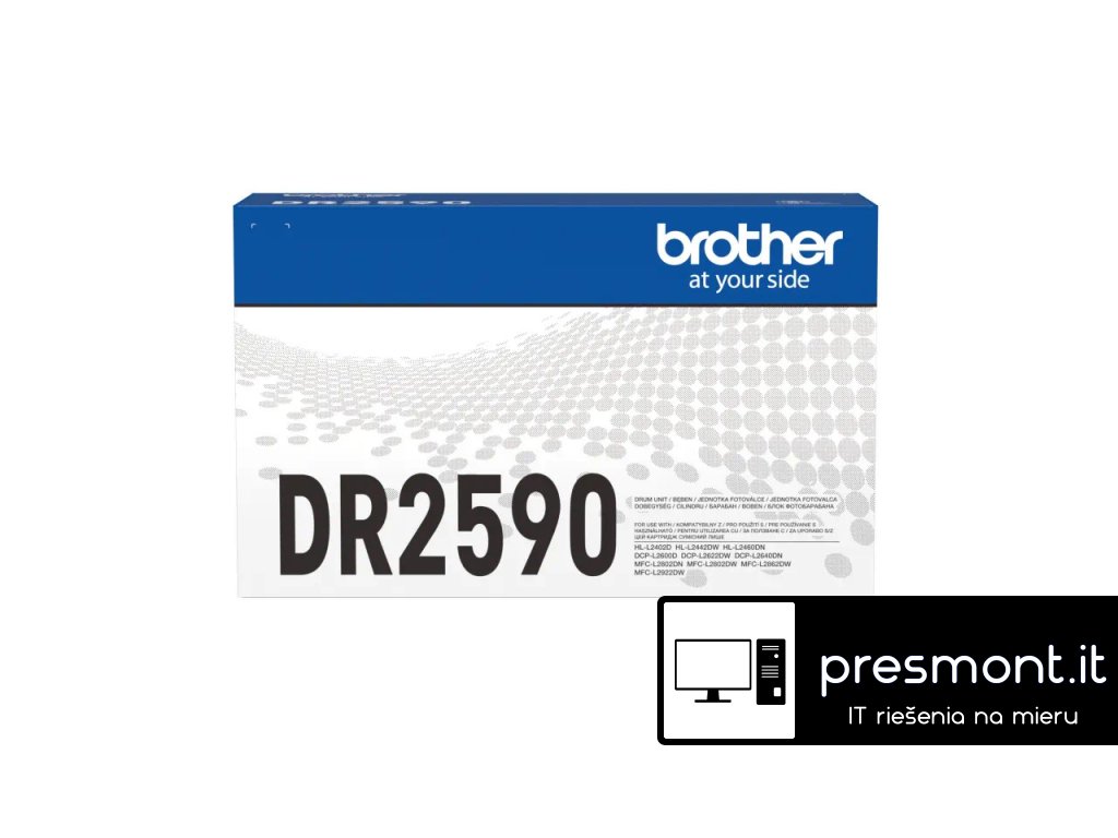 Originální jednotka fotoválce Brother DR2590 *Jednotka tiskového fotoválce Brother DR2590 – jeden kus. Potiskne 15000 stran. Udržujte svou kancelářskou laserovou tiskárnu v chodu tak, jak má, a zajistěte, aby vaše výtisky zůstaly v té nejlepší možné kvalitě s touto originální jednotkou laserové tiskárny Brother DR2590. Model DR2590 se snadno instaluje, je spolehlivý a má dlouhou životnost. Naše fotoválce Brother jsou kompatibilní s řadou tiskáren a pomáhají vám pokračovat v tisku. Po výzvě tiskárny vyměňte fotoválec za jednotku Brother DR2590, abyste zachovali vysokou kvalitu tisku. Ponechání aktuálního fotoválce v tiskárně nad doporučený počet výtisků povede ke snížení výkonu a může poškodit zařízení.Dodatočné parametre