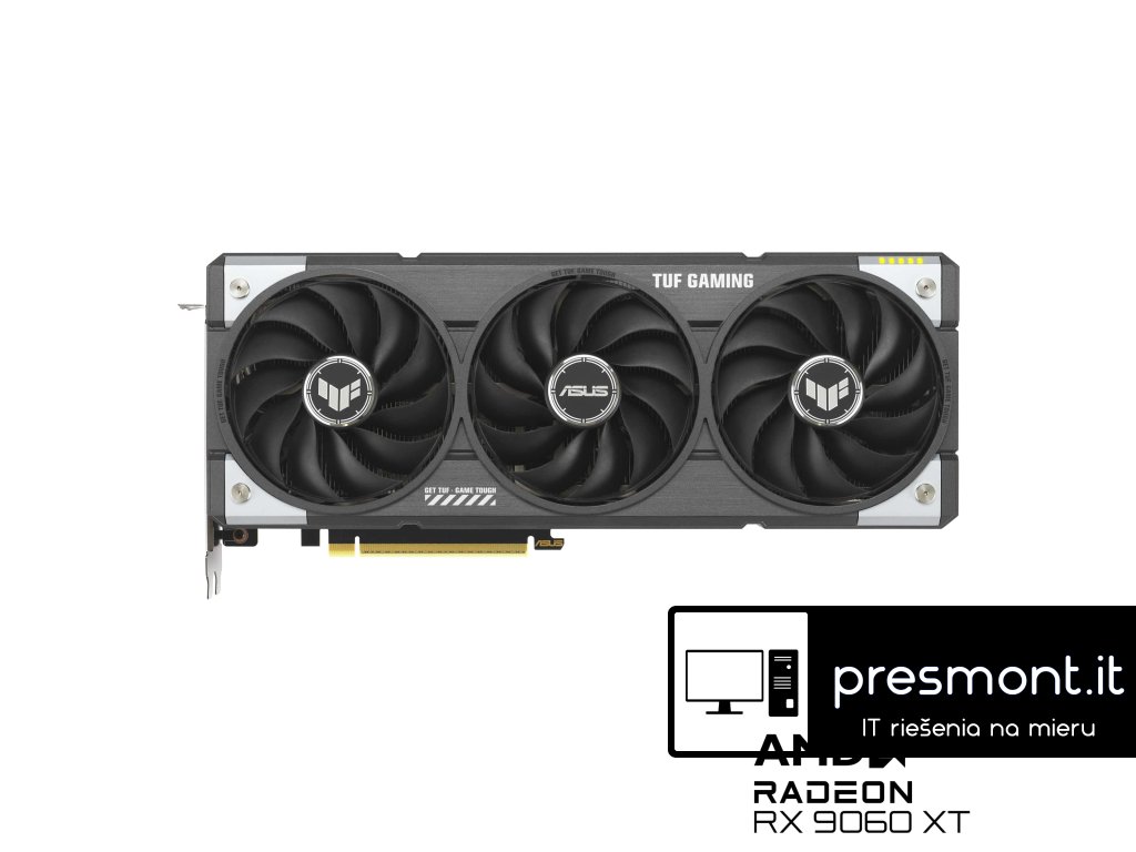 ASUS TUF Gaming Radeon™ RX 9060 XT 16GB GDDR6 OC Edition Grafický engine: AMD Radeon™ RX 9060 XT Stream procesorů: 2048 OpenGL: OpenGL® 4.6 Engine Clock: OC mode(GPU Tweak III): up to 3340 MHz (Boost Clock)/up to 2800 MHz (Game Clock) Default mode: up to 3320 MHz (Boost Clock)/up to 2780MHz (Game Clock) Paměťové rozhraní: 128-bit Video paměť: 16GB GDDR6 Rychlost paměti: 20 Gbps Napájecí konektory: 1 x 8-pin Maximální digitální rozlišení: 7680 x 4320 I/O: 1 Native HDMI 2.1b 2 Native DisplayPort 2.1a Maximální počet displejů: 3 Doporučený výkon PSU: 550W Bus Standard: PCIE 5.0 Slot: 2.5 SlotDodatočné parametre