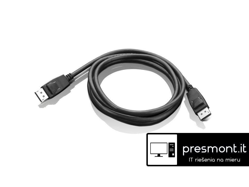 Kabel Lenovo DisplayPort to DisplayPort vyhovuje specifikaci DisplayPort 1.2 a ve stejném kabelu nabízí plnou podporu digitálního zvukového videa. Podporuje maximální šířku pásma 21,6 Gbps, Lenovo DisplayPort to DisplayPort Cable umožňuje podporu multimediálních aplikací příští generace s vynikající věrností a 3D podporou, vyšším rozlišením až 4K x 2K displejů a daisy řetězením a podporou více monitorů přes jeden konektor.Dodatočné parametre