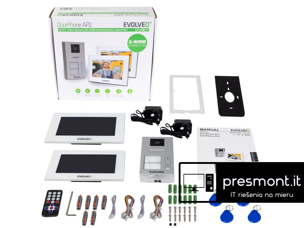 • EVOLVEO DoorPhone AP2-2 drátový videotelefon pro dva byty s aplikací, černý (PartNo: DPAP2-B) • EVOLVEO DoorPhone AP2-2 drátový videotelefon pro dva byty s aplikací, bílý (PartNo: DPAP2-W)TECHNICKÁ PODPORA A SERVIS:
