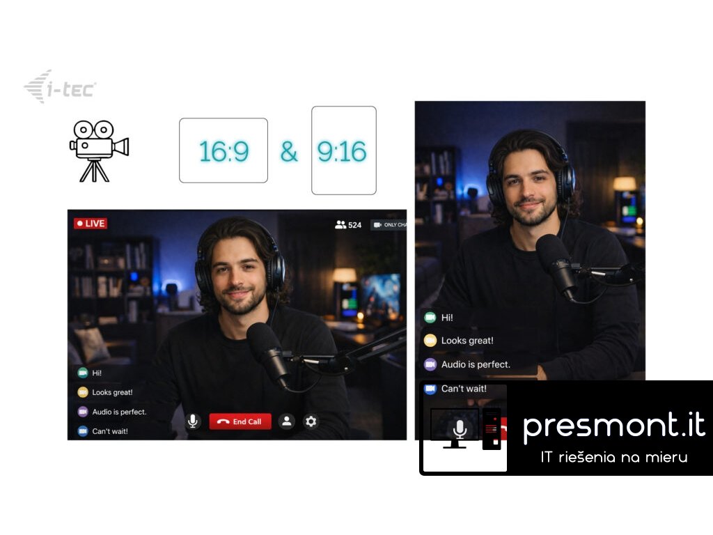 i-tec SOLOMON 700 STREAM je all-in-one řešení pro uživatele, kteří přesně vědí, co potřebují. Nabízí 4K rozlišení, podporu Full HD při 60 fps a možnost záznamu v poměrech stran 16:9 i 9:16 – ideální pro moderní tvorbu obsahu. Integrované nastavitelné LED kruhové světlo eliminuje potřebu externího osvětlení, zatímco PDAF autofokus zajišťuje ostré a stabilní zaostření za všech okolností. V kombinaci se stereo mikrofony je tato kamera ideální nejen pro streamery, ale také pro online školení, webináře a profesionální prezentace''. AUTOMATICKÁ OPTIMALIZACE OBRAZU • Automatické ostření s fázovou detekcí (Phase Detection Autofocus – PDAF) zajišťuje rychlé a přesné zaostření výpočtem vzdálenosti objektu přímo na obrazovém snímači. Eliminuje „hledání ostrosti“ a udržuje objekt ostrý i při pohybu, čímž zajišťuje stabilní a profesionální obraz. • Automatická expozice (Automatic Exposure – AE) se automaticky přizpůsobuje změnám světelných podmínek a upravuje jas a kontrast tak, aby byl snímaný objekt vždy dobře viditelný – bez přepalů nebo tmavých stínů a bez nutnosti ručního zásahu. • Automatické vyvážení bílé (Automatic White Balance – AWB) automaticky přizpůsobuje barevnou teplotu různým světelným podmínkám, udržuje bílou barvu neutrální a tóny pleti přirozené pro konzistentní a přesné podání barev bez ručního nastavování. • Automatická kontrola úrovně černé (Automatic Black Level Control – ABLC) dynamicky upravuje úrovně černé pro zachování detailů ve stínech a kontrastu, zabraňuje ztrátě kresby v tmavých oblastech nebo vyblednutí černé a zajišťuje hlubší a vyváženější obraz. • Ultra HD 4K rozlišení / Full HD při 60 fps pro detailní a ostrý obraz • Integrované LED kruhové světlo s nastavitelnou intenzitou • Podpora poměru stran 16:9 a 9:16 • PDAF autofokus pro rychlé a stabilní ostření • Bez „hledání ostření“ i při pohybu • Automatická optimalizace obrazu (automatická expozice (AE), automatické vyvážení bílé (AWB), automatická kontrola úrovně černé (ABLC)) • Dva integrované mikrofony (stereo) • Provoz Plug & Play, není nutná instalace ovladačů • Univerzální USB konektivita • Ideální pro streamování a tvorbu obsahu Specifikace VIDEO • Typ snímače: CMOS (1/2.55”) • Celkový počet pixelů: 8.29 MP • Podporovaná rozlišení: 3840 × 2160 při 30 fps 1920 × 1080 při 60 fps 1280 × 720 při 30 fps • Zorný úhel: 81° • Typ ostření: Automatické ostření (Autofocus) • Vestavěné světlo s nastavitelným jasem: (5 úrovní intenzity) Vlastnosti obrazu: • Automatické ostření s fázovou detekcí (PDAF) – rychlé a přesné automatické ostření bez „hledání ostrosti“, a to i při pohybu. • Automatická expozice (AE) – automaticky vyvažuje jas a kontrast pro trvale čistý a zřetelný obraz. • Automatické vyvážení bílé (AWB) – zajišťuje přirozené barvy a přesné tóny pleti za jakýchkoli světelných podmínek. • Automatická kalibrace úrovně černé (ABLC) – zachovává detaily ve stínech a kontrast pro hlubší a vyváženější obraz. AUDIO Mikrofon: 2× integrovaný mikrofon Dosah snímání: až 3 m UCHYCENÍ A POHYB KAMERY • Otočení objektivu až o 90° pro přepínání mezi poměry stran 9:16 a 16:9 • Univerzální upevňovací klip s gumovými podložkami a 1/4” závitem pro stativ (stativ není součástí balení) • Horizontální a vertikální otáčení pomocí nastavitelného kloubu PŘIPOJENÍ • Kabel: USB-C na USB-A kabel (150 cm) s USB-A / USB-C adaptérem • Plug & Play • Vstupní napětí: 5 V • Rozměry: 50 x 41x 64.7 mm • Hmotnost: 80 g SYSTÉMOVÉ POŽADAVKY Hardwarové požadavky • Zařízení s volným portem USB-A, USB-C, USB4 nebo Thunderbolt™ 3/4/5 Podporované operační systémy • Windows 10 / 11, macOS, Android, iPadOS, ChromeOS, Linux Obsah balení • Webkamera • Uživatelská příručka • USB-C na USB-A kabel (150 cm) • USB-A / USB-C adaptérDodatočné parametre
