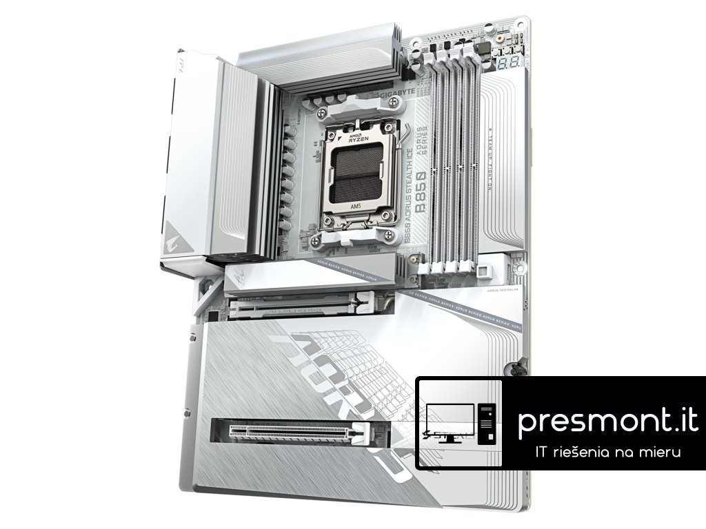 GIGABYTE B850 AORUS STEALTH ICE Chipset: AMD B850 Rozměrový formát: ATX (305x244mm) Podpora pro procesory: AMD Ryzen™ 7. až 9. generace Patice procesoru: AM5 Paměť: * 4x DIMM patice podporující až 256GB, DDR5 8200(OC) / 8000(OC) / 7950(OC) / 7900(OC) / 7800(OC) / 7600(OC) / 7400(OC) / 7200(OC) / 7000(OC) / 6800(OC) / 6600(OC) / 6400(OC) / 6200(OC) / 6000(OC) / 5800(OC) / 5600(OC) / 5200 / 4800 / 4400 MT/s paměťové moduly * dvoukanálová architektura paměti * podpora paměťových modulů Extreme Memory Profile (XMP) a AMD EXtended Profiles (AMD EXPO) Grafické výstupy: * 1x HDMI port s maximálním rozlišením 4096x2160 při 60 Hz - Podpora pro verzi HDMI 2.1, HDCP 2.3 a HDR Zvuková karta: * Kodek Realtek® ALC1220 * High Definition Audio * 2/4/5.1/7.1 kanál * Podpora S/PDIF out Ethernet: Realtek® 5GbE LAN WLAN + Bluetooth: Realtek® Wi-Fi 7 RTL8922AE (802.11a, b, g, n, ac, ax), podpora frekvenčních pásem 2,4/5/6 GHz + Bluetooth v5.4 Rozšiřující sloty: * 1x PCI Express x16 podporuje PCIe 5.0 a běží na x16 (PCIEX16) * 1x PCI Express x16 podporuje PCIe 4.0 a běží na x4 (PCIEX4) Úložný prostor: celkem podporuje 4 sloty M.2 a 2 porty SATA 6Gb/s * 1x M.2, M key typ 25110/22110/2580/2280 - podpora PCIe 5.0 x4/x2 SSD (M2A_CPU) * 1x M.2, M key typ 22110/2280 - podpora PCIe 5.0 x4/x2 SSD (M2B_CPU) * 2x M.2, M key typ 22110/2280 - podpora PCIe 4.0 x4/x2 SSD (M2C_SB, M2D_SB) * 2x port SATA 6Gb/s RAID řadič: * podpora RAID 0/1/5/10 pro úložná zařízení NVMe SSD * podpora RAID 0/1 pro úložná zařízení SATA USB: Zadní USB (celkem 11 portů) * 1x USB Typu-C 3.2 Gen 2 * 2x USB 3.2 Gen 2 (červený) * 4x USB 3.2 Gen 1 * 4x USB 2.0/1.1 Přední USB (celkem 7 portů) * 1x USB Typu-C header - podpora USB 3.2 Gen 2x2 * 1x USB 3.2 Gen 1 header - podpora dalšího 1 USB 3.2 Gen 1 * 2x USB 2.0/1.1 header - podpora dalších 2 USB 2.0/1.1 Porty na zadním panelu: * 1x USB Typu-C 3.2 Gen 2 * 2x USB 3.2 Gen 2 (červený) * 4x USB 3.2 Gen 1 * 4x USB 2.0/1.1 * 1x HDMI * 1x optický konektor S/PDIF out * 2x anténní konektor (2T2R) * 1x RJ-45 * 2x audio jack Interní porty: Napájení * 1x 24-pin ATX hlavní napájecí konektor * 1x 8-pin ATX 12V napájecí konektor * 1x 4-pin ATX 12V napájecí konektor Související s ventilátorem a chlazením * 1x CPU fan header * 1x CPU fan/water cooling pump header * 4x system fan header * 2x system fan/water cooling pump header Související s úložištěm * 4x M.2 slot (Key M) * 2x SATA 6Gb/s port USB * 1x USB Typu-C header * 1x USB 3.2 Gen 1 header * 2x USB 2.0/1.1 header Ostatní * 3x adresovatelný RGB Gen2 LED strip header * 1x RGB LED strip header * 1x front panel header * 1x front panel audio header * 1x noise detection header * 1x Trusted Platform Module header (pouze pro modul GC-TPM2.0 SPI/GC-TPM2.0 SPI 2.0/GC-TPM2.0 SPI V2) * 1x Q-Flash Plus tlačítko * 1x napájecí tlačítko * 1x resetovací tlačítko * 1x reset jumper * 2x temperature sensor header * 1x Clear CMOS jumper BIOS: 1x 512Mb flash, AMI UEFI BIOS, PnP 1.0a, DMI 2.7, WfM 2.0, SM BIOS 2.7, ACPI 5.0 Odkaz na stránku výrobce: https://www.gigabyte.com/Motherboard/B850-AORUS-STEALTH-ICE#kfDodatočné parametre