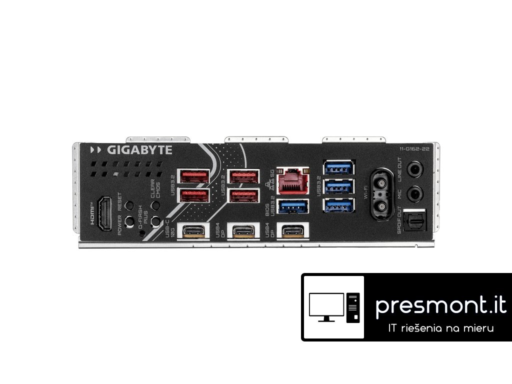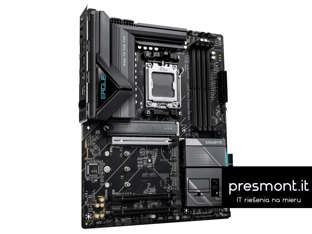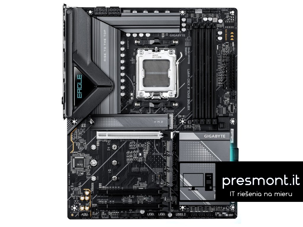 GIGABYTE ,X870E EAGLE X3D WIFI7 Chipset: ,AMD X870E Rozměrový formát: ,ATX (305x244 mm) Podpora pro procesory: ,7. až 9. gen Ryzen Patice procesoru: ,AM5 Paměť: , *4x DIMM patice podporující až 256GB, DDR5 ,9000(OC) / 8800(OC) / 8600(OC) / 8400(OC) / 8000(OC) / 7800(OC) / 7600(OC) / 7800(OC) / 7600(OC) / 7200(OC) / 7000(OC) / 6800(OC) / 6600(OC) / 6400(OC) / 6200(OC) / 6000(OC) / 5600(OC) / 5200 / 4800 / 4400 ,MT/s ,paměťové moduly *Dvoukanálová architektura paměti *Podpora paměťových modulů AMD EXtended Profiles for Overclocking (AMD EXPO™) a Extreme Memory Profile (XMP) Grafické porty: , *2x ,USB4® typu C® ,s maximálním rozlišením 3840x2160 při 240 Hz - Podpora video výstupů USB4 a DisplayPort, podpora pro DisplayPort verzi 1.4 a HDR *1x HDMI s maximálním rozlišením ,4096x2160 při 60 Hz ,- ,Podpora pro HDMI verzi ,2.1, HDCP 2.3 a HDR, podpora pro nativní porty kompatibilní s HDMI 2.1 TMDS Zvuková karta: , *Kodek ,Realtek® ALC1220 *High Definition Audio *2/4/5.1/7.1 ,kanálový *Podpora S/PDIF out Ethernet: ,Realtek® 5GbE LAN WLAN + Bluetooth: ,Qualcomm® Wi-Fi 7 QCNCM865 ,(802.11a, b, g, n, ac, ax, be), ,podpora frekvenčních pásem 2,4/5/6 GHz + Bluetooth 5.4 Rozšiřující sloty: , *1x PCI Express x16 podporuje PCIe 5.0 a běží na x16 ,(PCIEX16) *1x PCI Express x16 podporuje PCIe 4.0 a běží na x4 (PCIEX4) *1x PCI Express x16 podporuje PCIe 3.0 a běží na x2 (PCIEX2) RAID řadič: , *RAID 0, RAID 1 a RAID 10 podpora pro úložná zařízení SATA *RAID 0, RAID 1, RAID 5 a RAID 10 podpora pro úložná zařízení NVMe SSD Úložný prostor: , *1x M.2, M key typ ,25110/22110/2580/2280 ,- podpora PCIe 5.0 x4/x2 SSD (M2A_CPU) *3x M.2, M key typ ,22110/2280 ,- podpora PCIe 4.0 x4/x2 SSD ,(M2B_SB, M2C_SB, M2D_SB) *4x SATA 6Gb/s , USB: , Zadní USB *2x ,USB4® Type-C® *1x ,USB Type-C® ,s podporou USB 3.2 Gen 2 *4x USB 3.2 Gen 2 Type-A (červený) *4x ,USB 3.2 Gen 1 Přední USB *1x USB ,Type-C® header s podporou USB 3.2 Gen 2x2 *2x USB 3.2 Gen 1 header - podpora dalších 2 USB 3.2 Gen 1 *2x USB 2.0/1.1 header - podpora dalších 2 USB 2.0/1.1 Interní porty: , Napájení *1x ,24pinový hlavní napájecí konektor ATX *2x ,8pinový napájecí konektor ATX 12V Související s ventilátorem a chlazením *1x ,CPU fan header *1x ,CPU fan/water cooling pump header *4x ,system fan header *2x ,system fan/water cooling pump header Související s úložištěm *4x M.2 slot (M key) *4x SATA 6Gb/s port USB *1x USB ,Type-C® header *2x USB 3.2 Gen 1 header *2x USB 2.0/1.1 header Ostatní *3x adresovatelný RGB Gen2 LED strip header *1x ,RGB LED strip header *1x ,front panel header *1x ,front panel audio header *1x ,noise detection header *1x Trusted Platform Module header (pouze pro modul ,GC-TPM2.0 SPI V2) *1x ,reset jumper *1x ,Clear CMOS jumper *2x temperature sensor header Porty na zadním panelu: , *1x ,HDMI *1x ,resetovací tlačítko *1x napájecí tlačítko *1x tlačítko Q-Flash Plus *2x ,USB4® Type-C® ,(DisplayPort) *1x ,USB Type-C® ,s podporou USB 3.2 Gen 2 *4x USB 3.2 Gen 2 Type-A (červený) *4x ,USB 3.2 Gen 1 *1x ,RJ-45 *2x ,anténní konektor (2T2R) *2x audio jack *1x optický konektor S/PDIF out BIOS: ,1x 512Mb flash, AMI UEFI BIOS, PnP 1.0a, DMI 2.7, WfM 2.0, SM BIOS 2.7, ACPI 5.0 Odkaz na stránku výrobce: ,https://www.gigabyte.com/Motherboard/X870E-EAGLE-X3D-WIFI7Dodatočné parametre