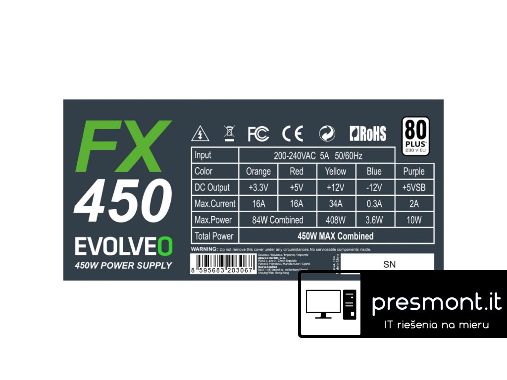 EVOLVEO FX 450, zdroj 450W ATX, 14cm, tichý, 80+ White, záruka 3 roky