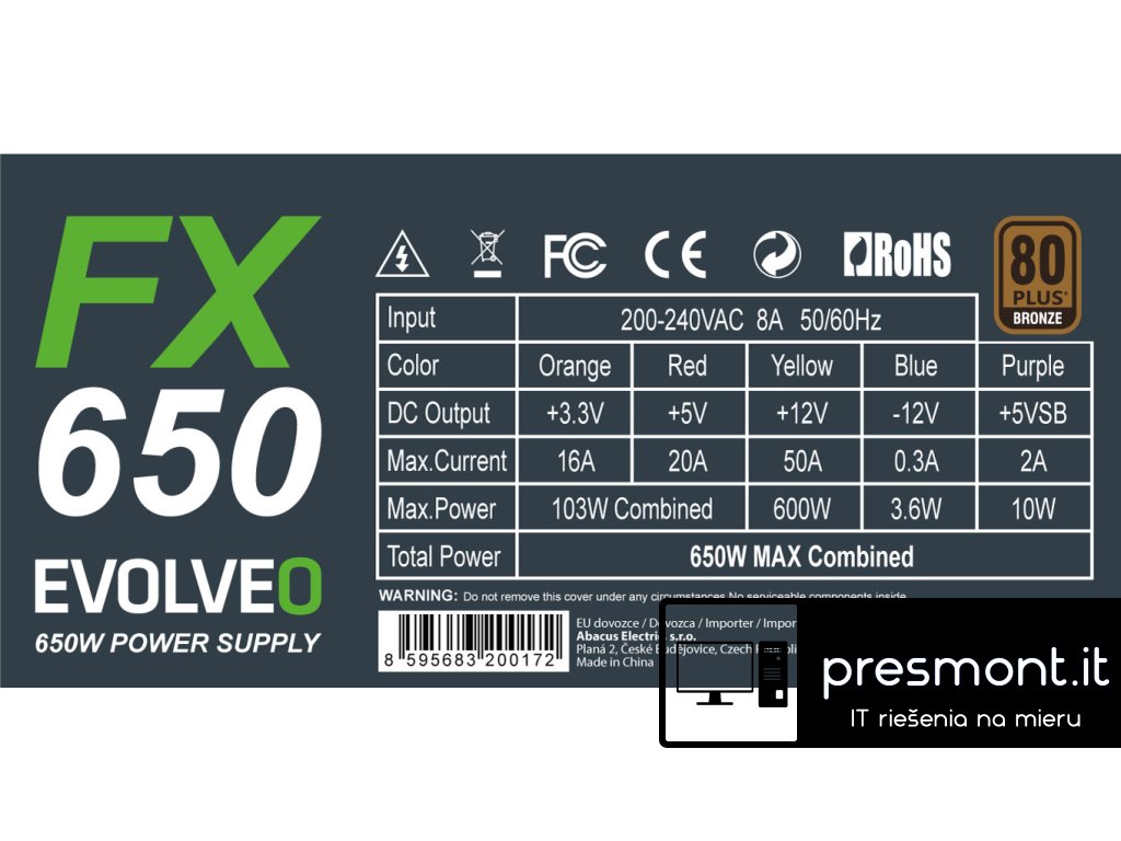 EVOLVEO FX 650, zdroj 650W ATX, 14cm, 80+, Bronze, 3YRW