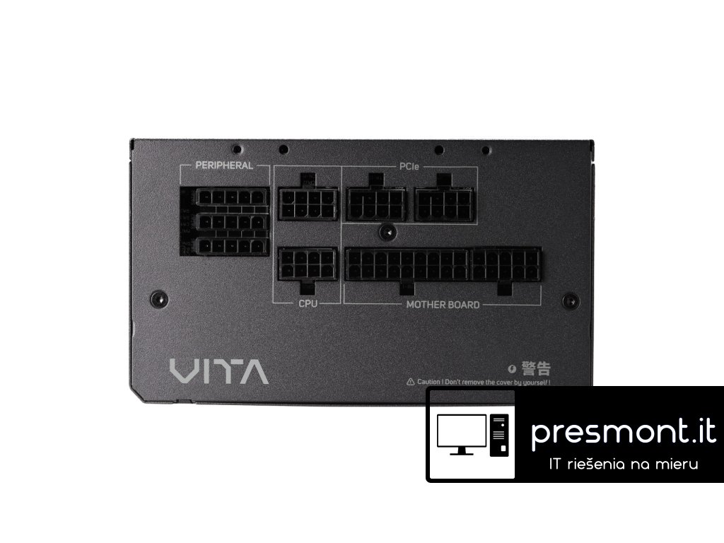 FSP VITA GM 650W Vlastnosti * ATX 3.1 * účinnost >90% při typické zátěži * certifikace 80 PLUS® Gold * 120mm ventilátor s hydraulickým ložiskem * 105°C japonský velkokapacitní kondenzátor * kompletní ochrana: OCP, OVP, SCP, OPP, UVP, OTP Technické parametry Model: VITA-650GM Výkon: 650W Formát: ATX12V V3.1 PFC: aktivní Typ ventilátoru: HYB 120mm Rozměry: 140×150×86mm Účinnost: 90% Vstupní napětí: 100-240V ac Vstupní proud: 8-4A Vstupní frekvence: 50-60Hz Konektory: * 1x MB 20+4 pin * 2x CPU 4+4 pin * 4x PCIe 6+2 pin * 8x SATA * 4x Molex (peripheral) Více informací naleznete na stránkách výrobce: https://www.fsplifestyle.com/en/product/VITAGM650W.htmlDodatočné parametre